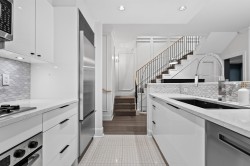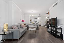 Stunning Fully Renovated 1443 sqft 2 level 2 Bedroom plus Den & Flex Space, 3 Bathroom LUXURIOUS TOWNHOME located at the world class waterfront address. RARE only one of 3 with the front door facing east towards seawall. New Miele Appliances & Washer Dryer, Wall & Crown Mouldings, New Backsplash,Countertops, Hardwood floors, Gas Fireplace, Air Con, new fixtures & new doors. Room for a Home Office. SHOW HOME CONDITION! Some Water Views from the lg. patio & upstairs balcony overlooking the Marina. Resort amenities include an indoor pool, jacuzzi, sauna, steam, gym, theatre room & 24 hr concierge. 2 S/S parking right by elevator & locker. Lots of insuite storage. Walk/Bike the Seawall. Coal Harbour Community Center & New School just out your doorstep. 2 Pets allowed. Open House Sat 2-4 Feb 7