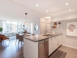 Surrounded by the natural beauty of the River District, this spacious 2 bedroom, 2 bathroom plus Den at the Rhythm development checks all the boxes. The gourmet kitchen showcases sleek cabinetry, Bosch appliances, stone backsplash, and a large quartz countertop island. The floor-to-ceiling windows overlook a lovely west-facing courtyard, there is a covered balcony, an efficient plan with bedrooms on opposite sides plus a spacious den/office. Complete with parking, a locker, and heat + hot water utilities included. The Rhythm building offers great amenities with a 2-level clubhouse, gym + communal garden. Conveniently located, the Rhythm is just a 5 min walk to the River District's Town Center's shops, grocers, and restaurants, plus it's only a short drive to YVR, Metrotown & Marine Gateway
