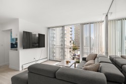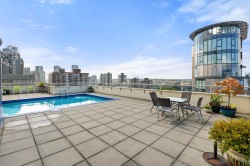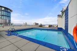 Beautifully updated apartment in the quiet heart of the West End. Functional efficient layout one bdrm with modern kitchen Great NE view of the city. This is a leasehold non-strata apartment. Prepaid lease to 2073. Small capital investment (min 35% down) provides accommodation at less than the cost of rent. Roof elevator plumbing and boiler recently updated. Fabulous roof top pool with expansive deck provides one of the best views of English Bay in the city. No pets. Rentals allowed min 90 days. Monthly Maintenance Fee ($739.18) includes heat hot water and property taxes. Shared laundry with one every other floor. Parking and storage available at additional monthly cost. Showing by appointment only. Act fast and call your Realtor to arrange a viewing.