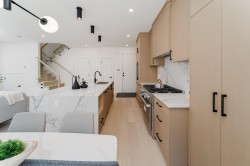 Don't miss out on this spacious and bright BACK 1/2 DUPLEX nested on a quiet street, in Cambie, one of Vancouver's best neighbourhoods. Superior transit, shopping and dining, and next door to Douglas Park with ample open fields, community center, and playground area. This home features functional floor plan, large kitchen with high quality appliances, living / dining space and powder room on main level and 3 bedrooms with ensuites on the second and third level. Large floor to ceiling windows, custom millwork, radiant in-floor heating, HRV, central A/C, security system, 556 sq ft of crawl space that can be used for additional storage, private yard and detached garage. OPEN HOUSE: SUN Oct 19 from 2:30-4:00 PM.