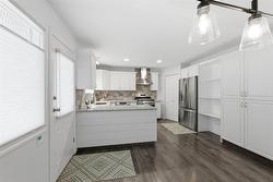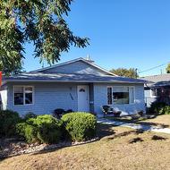 Excellent investment or holding property that has recently been updated and features new zoning with lane access. This nicely updated rancher offers wheelchair accessibility, 3 bedrooms (2 on the main floor and 1 bedroom in the basement), and 2 full bathrooms. Interior updates include a newer furnace, hot water tank, laminated floors, interior doors, fresh paint, new window coverings, a refinished gas fireplace, and a washer and dryer. The stylish kitchen boasts granite countertops, a tiled backsplash, newer stainless steel appliances, and a double undermount sink. The main bedroom provides ample closet space and features a barn door leading to an adjacent ensuite, which includes double marble sinks, a tiled floor, and a walk-in tiled shower. The property is situated in a quiet neighborhood and features a beautifully landscaped, fenced backyard with a flagstone patio, a garden area, a 12.5’ x 8’ rear shed for storage, and a covered seating area perfect for summer barbecues. A large double carport and driveway offer plenty of parking, with convenient access from a rear laneway. This location is ideal, close to the Vernon hospital, downtown, recreation facilities, restaurants, parks, and numerous amenities.