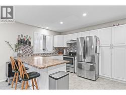 This stunning rancher in a prime, quiet neighbourhood is move-in ready with incredible flexibility! This home is a short drive to Okanagan Lake, world class golfing and all city amenities. Main floor boasts 3 spacious bedrooms and 2 full baths. Downstairs features a 4th bedroom with walk-in closet plus half bath. A bright 1-bed+den in-law suite with full bath, walk-in closet, private laundry, separate entrance, garden boxes & patio—perfect for extended family or rental income! With minor tweaks, combine the 4th bedroom to create a 2-bed, 1.5-bath suite. Entertain on the expansive covered deck overlooking your fully landscaped, fenced backyard with garden shed. RV/boat enthusiasts rejoice—dedicated parking with 30 amp/115V hookup plus double garage! Loaded with upgrades: modern appliances, cozy gas fireplace, renovated bathroom & more. This is flexible living at its finest! (id:27)