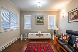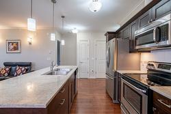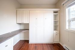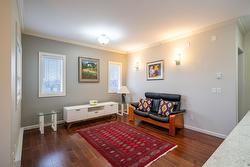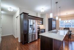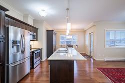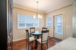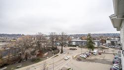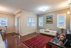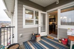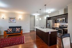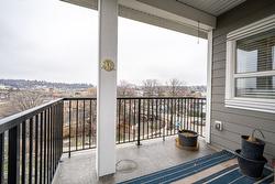 Gorgeous top floor corner suite East exposure for lots of natural light & beautiful mountain & city views. This bright 2 bdrm offers an open floor plan with 9' ceilings, a kitchen complete with stone counters, 4 stainless appliances & large island with a breakfast bar. Easy care laminate flooring thru-out and decorative crown molding in the main living area are two features you will be sure to enjoy. A large deck is located off the dining room where you can sit & enjoy the morning sunshine while you look out to the tree lined street and watch all the activity outside. Spacious 2nd bdrm features a convenient built-in murphy bed with computer desk. The main bath with has a nice soaker tub if you are so inclined. The master can accommodate a king-sized bed, has a generous walk-thru closet with convenient built-in shelving & full ensuite with walk-in shower. Secure u/g parking + a downtown location just a few minutes to all shopping. No property purchase tax & 1 Year Schubert Center Membership. Building is pet friendly! Catherine Gardens is a non-profit society dedicated to providing affordable 55+ housing with the peace of mind of a newer building. No responsibility to sit on a strata council & a maintenance/occupancy fee that covers EVERYTHING (water, sewer, garbage, snow removal, TAXES, electrical/plumbing maintenance & repairs, appliance repairs/replacement & landscaping) except content insurance, hydro, cable & telephone! Come and enjoy a carefree lifestyle.