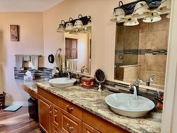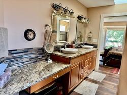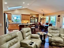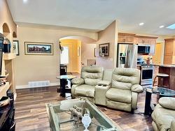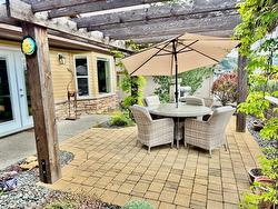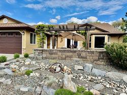 Welcome to your dream retreat in this exclusive 40+ community, nestled on the edge of a prestigious golf course. This exquisite custom-built home offers the perfect blend of comfort, sophistication, and outdoor charm, with breathtaking views and refined finishes throughout. Step inside to discover a thoughtfully designed layout featuring a spacious master suite complete with a walk-in closet and a luxurious 4-piece ensuite. The heart of the home boasts two cozy gas fireplaces, skylights, a custom wine cellar and bar, a large games room, and ample storage, ideal for both entertaining and relaxation. The outdoor spaces are truly exceptional. Enjoy your morning coffee in the charming front seating area, or unwind in the backyard paradise, a meticulously landscaped haven with mature trees, brick walkways and stairs, a gazebo, and a covered deck perfect for year-round enjoyment. The BBQ gas hookup, outdoor fire pit gas line, and garden shed complete the outdoor lifestyle experience. Whether you're hosting friends or enjoying a quiet evening with a glass from your private cellar, this home offers an unparalleled blend of elegance and leisure. A rare opportunity for those seeking a tranquil, upscale community with resort-style amenities right outside your door. Enjoy the clubhouse benefits including an indoor swimming pool, whirlpool, fitness room, library and social room. Vernon just 15 min away. Book your private viewing today and step into the lifestyle you've been waiting for.