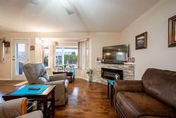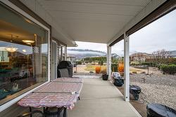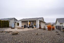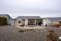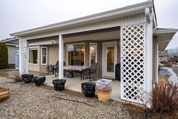Meticulously maintained 3 bedroom (2 bedrooms, 1 bedroom/den) 2 full bath Rancher features a great room style floor and is beautiful and bright with white kitchen cabinetry & an island with eating bar. Kitchen is spacious with granite counters & roll out drawers in pantry cupboard. Enjoy the stylish gas f/p with newer stone surround from your main living areas. Primary bedroom can accommodate a king bed and offers a full ensuite and walk in closet. Gleaming hardwood flooring through-out adds a touch of real elegance. Newer appliances including the washer & dryer, and the roof is just approaching 7 years on a 35 year shingle. The furnace & central air have been serviced annually and septic was pumped within the last 2 years. The yard is super low maintenance (no mowing here!) and is lock and go for an extended summer holiday. Desert Cove is a gated community backing onto Spallumcheen golf course and offers a great lifestyle with a fully equipped clubhouse boasting an indoor, saltwater pool, hot tub, library, pool tables and party & craft rooms. Lots of daily activities going on! Pets are allowed with approval. Monthly fee of $414.45 covers use of services, water & snow removal. Just 15 minutes to city of Vernon and 45-50 minutes to Kelowna Airport. Extended lease in place to 2068. Annual taxes are just $1,626.06 before Home Owner's Tax! Come and see this lovely adult home in person...you won't be disappointed.