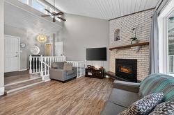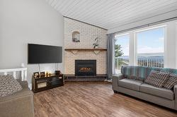 The main level showcases vaulted ceilings and a cozy fireplace in the bright sunken living room, creating a warm and inviting atmosphere. The primary bedroom features a private balcony where you can take in the expansive views. The lower-level suite is well appointed with quartz countertops, newer appliances, and soft-close cabinetry.