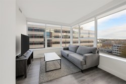 Welcome to the Hudson Place One, the centrepiece of Downtown Victoria's Skyline. Built by award winning developer Townline, this steel and concrete tower is known for its unparalleled amenities and walkability to everything Downtown has to offer. This 2 bed, 2 bath suite has high end finishings including an upscale kitchen fitted with quartz countertops, ample storage and designer Bosch appliances w/gas range. Light flooring extends into the sun filled living room with westerly ocean and city views, and dining area with access to the 24x7 deck. The primary bedroom is generous in size, and includes a luxurious ensuite with heated floors. On the opposite of the suite is the private 2nd bedroom and 4 piece bathroom. To cap it off, in-suite laundry means this home has everything you need. With amenities like concierge, gym and sauna, yoga room, lounge, billiards room, dog run, guest suite and more, Hudson Place One provides something for everybody. Upgraded EV Parking and storage included!