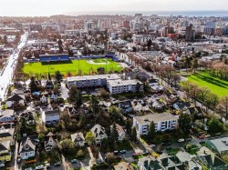 Investor and developer opportunity in Victoria’s Central Park area. This legal duplex sits on a 60 x 120 lot with a sunny, south-facing rear yard and a double garage, plus a layout that invites creative thinking. The duplex is heritage registered but not designated, opening the door to future options while keeping the character that buyers love. With the building positioned to one side, explore potential to stratify the existing home and consider a second duplex, or evaluate a missing middle style project. The main floor offers a vacant one bedroom suite with its own bath, ready for your tenant selection, and it has been rented as a two bedroom plan in the past. The upper suite features a three-bedroom layout with one bath, and is home to a long-term tenant planning to move in late fall 2026. 1920s charm meets key mechanical upgrades, with added value possible through basement development, garage accommodation potential, or full redevelopment.
