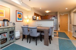 The Gateyard is a quality-built Vic West complex in the Railyards community fronting the Selkirk Waterway and close to the Galloping Goose Trail. Spacious 2 bedroom, 2 bath condo with 2 parking spots, separate storage and 2 pets allowed! 973 sq/ft plus a 309 sq.ft private and part covered garden patio. Cozy electric fireplace in the spacious livingroom, large kitchen with stainless appliances and wood floors. Nice open layout to the spacious livingroom and dining area with a cozy electric fireplace and leading to the entertaining sized patio. Primary bedroom has 4 piece ensuite and large closet space, in-suite laundry, 2 in ground secure parking spots. Short walk to amenities, and minutes to downtown Victoria. Pet friendly.