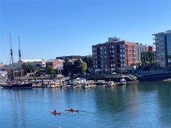 OH Sat Feb 7th 12:00-1:30pm Waterfront lifestyle condo with a large ground-floor patio in Victoria’s iconic Mermaid Wharf. Enjoy an active, coastal way of life with kayaking, paddle boarding, bike paths, and waterfront strolls just steps from your door. Thoughtfully designed to maximize space and functionality, featuring high ceilings with floor to ceiling windows, gas fireplace, in-suite laundry, expanded bedroom layout with platform bed/storage, murphy bed, built-in desk/shelves. Convenient gated street level access to large patio, and secure underground parking/storage. A steel and concrete, pet-friendly, professionally managed building with bike & kayak storage, dock access, and roof top patio with harbour/city views. Monthly strata fee includes gas & hot water. Walkable location to Downtown Victoria’s restaurants, cafés, shopping, entertainment, Chinatown, water taxis, and walkways. Great waterfront lifestyle living as a residence, urban retreat, or investment property.