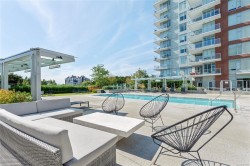 Welcome to the Encore at Bayview, where luxury and lifestyle meet. This spacious 2 bed, 2 bath condo offers 1,061 sq ft of modern living with high-quality finishes throughout. The open concept kitchen features sleek quartz countertops, stainless steel appliances, a gas cooktop, and ample storage. Bright and airy, the living space is enhanced by wide plank laminate flooring and large windows that flood the home with natural light. The spa-inspired bathrooms include tile flooring, quartz counters and contemporary fixtures. Enjoy incredible southwest exposure from both the living area and private balcony - perfect for soaking up the sun and taking in the views. The Encore is known for its exceptional amenities, including a fully equipped gym, outdoor pool with lounge areas, guest suite, bike storage, and inviting common spaces for entertaining. Ideally located in one of Victoria’s most sought-after neighbourhoods, this condo combines comfort, convenience, and resort-style living.