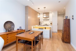 Welcome to Bellewood Park, an award-winning community by Abstract, set among majestic heritage Garry oaks on two acres of parkland in historic Rockland. Thoughtfully designed to bring nature to your doorstep, this steel & concrete building offers lasting quality and peace of mind. This Junior 2-bedroom, 2-bath home boasts over 800 sq. ft. of finished living space with hardwood floors, air conditioning, custom closets and a bright open-concept layout. The gourmet kitchen features custom cabinetry, a Wolf gas range, Fisher & Paykel French door refrigerator and double-drawer dishwasher. The spacious primary includes a walk-in closet, while the spa-inspired bathroom offers in-floor heated tile. Step outside to your private heated balcony for outdoor enjoyment year-round. Pet friendly, with secure underground parking, storage locker, bike & kayak areas. Walk to downtown restaurants, Cook Street Village and Dallas Road to enjoy ocean views and seaside paths.