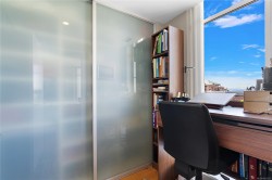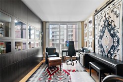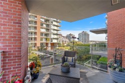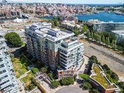 Discover sophisticated urban living at Bayview One in this 1,538 sq ft, 3-bedroom, 3-bath residence featuring Kentwood engineered floors and custom Wenge cabinetry throughout. Two spacious primary suites include walk-in closets with custom organizers and spa-inspired ensuites. A custom office nook with water views and a library wall with lighted display cabinets add both function and style. The gourmet kitchen is equipped with Jenn-Air, Bosch, and DCS appliances, plus a built-in Miele coffee station and wine fridge. The living room offers illuminated shelving and a Napoleon linear fireplace with a hidden TV cabinet. An oversized storage unit is conveniently located next to the parking stall. Building amenities include concierge service, a fitness centre, steam rooms, a whirlpool, a lounge with billiards, and an outdoor terrace with BBQs. Just a short walk to downtown and the Songhees Waterway, this pet-friendly home welcomes two companions.