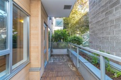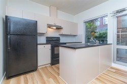 This downtown condo has the ideal layout and includes secure parking in addition to a generous and secluded balcony. A true 1 bedroom unit on the quiet side of the building with generous outdoor space overlooking a walled in courtyard far away from traffic and pedestrians. The bedroom features walk in closet, while recently updated four-piece bathroom hosts soaker tub, rainfall shower, and in-suite laundry. Open kitchen and living spaces have new full-sized appliances and plenty of cabinetry. Enjoy large windows and high ceilings throughout, as well as new vinyl plank flooring. Come live downtown in a small but excellently managed building on a quiet side street, within steps to everything downtown has to offer - bakery, grocery, bus lines, bike lanes, shopping, nightlife, and restaurants.