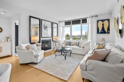 Stunning luxury suite for the elevated lifestyle! The gorgeous designer decor will surely impress along with the top calibre of finishing of this beautiful ‘like new’ residence. The well tailored floor plan has an open concept, separated bedrooms each with own ensuites, laundry area and flex room. The sleek kitchen design is crafted with custom milled German cabinetry, precision fitted Jenn Air appliances, centre island, granite countertops and backsplash. Great room living and dining area accented with electric fireplace ambiance is perfect for entertaining. Triple access to south facing balcony from primary, bedroom and living room. Secure, elegant living with an unparalleled list of amenities - grand lobby entrance, concierge, conference room, owners lounge, large sun deck with BBQ area, fitness facility, hot tub and sauna, guest suite, bicycle and kayak storage rooms, car wash and a pet parlour. Secure parking and storage locker. Note: strata fees include hot water and natural gas