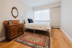 Discover this beautifully updated 877 sqft, 2-bedroom corner unit in the heart of Fairfield, directly across from Beacon Hill Park and close to charming Cook Street Village, Dallas Road waterfront, Inner Harbour, and downtown--truly a prime spot! The spacious living room and inline dining area feature elegant oak floors throughout, bathed in natural light from large picture windows. Patio doors lead to a generous balcony, perfect for morning coffee or relaxing with a book amid Fairfield’s vibrant ambiance. The modern kitchen shines with raised panel cabinetry, granite counters, a stainless sink, and tiled backsplash. Both the bright master and large 2nd bedroom off hallway offer picture windows and spacious closets. A sleek 4-piece bathroom includes a granite vanity and undermount sink. Common amenities like arooftop lounge, swirl pool, sauna, workshop, bike storage, and separate storage. A true gem Lease expires Dec 2073. Monthly fee includes property taxes, heat, hot water, etc.