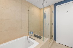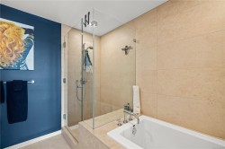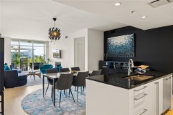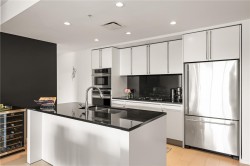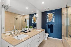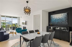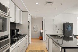 Welcome to Bayview Residences, offering 1,300+ sq ft luxury with modern upgrades and timeless elegance. This bright condo features two primary bedrooms, each with spa-inspired en-suites, plus a sunny south-facing balcony, perfect for relaxing. Recently updated with new hardwood floors, fresh paint, blinds, and an LG one-piece laundry centre. The kitchen boasts a Frigidaire Gallery wall oven with convection and air fry, plus a Bosch dishwasher, blending style and function. Enjoy resort-style amenities: concierge, fitness studio with whirlpool & steam rooms, business centre with secure package storage, lounge spaces, car & pet wash bays, XL storage locker, and secure underground parking. Ideally located by Bayview Place Dog Park and close to Songhees Waterway, cafés, pubs, and dining. Pet- and rental-friendly, this residence offers unmatched comfort and convenience.
