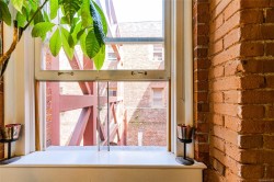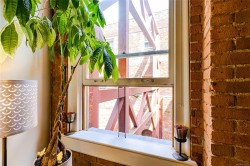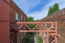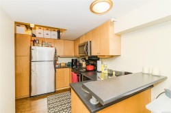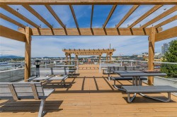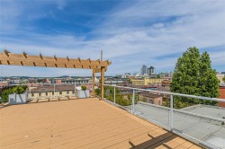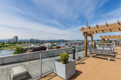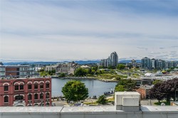 The Leiser, a landmark brick building in the heart of Downtown Victoria. Originally built in 1896, this iconic structure was transformed in 2008, reimagined into stylish loft-style condos that beautifully fuse architectural character with contemporary finishes. The suite boasts nearly 14-foot ceilings adorned with a grand original window, framed in lovingly restored wood casings and meticulously restored brickwork. Inside, discover a chicly designed living space, in-suite laundry, and a modern kitchen with quartz countertops. Building amenities include bike storage, a separate storage locker, and a full rooftop patio offering breathtaking 360-degree ocean and city views. Just steps away from the stunning waterfront walkway, vibrant Oldtown, shops, restaurants, and attractions. This property invites you to embrace the walking and biking lifestyle while owning a piece of the city's rich history. Charming, convenient, and pets are welcome.