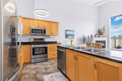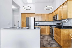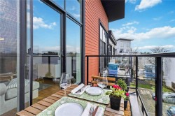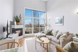 Welcome to 308 – 630 Speed Ave! This is a TOP FLOOR 2-bedroom 2-bathroom condo that shows as brand new. You will notice a great pride in ownership throughout the home. Enter inside to find a bright, open-concept living area with vaulted ceilings, freshly painted walls, an electric fireplace, and large windows leading out to your balcony. Your kitchen offers granite countertops, plenty of cabinet storage, tiled floors and stainless-steel appliances. Both bedrooms are spacious, with your primary bedroom featuring a 4-piece ensuite bathroom and walk-through his/her closets! Your washer and dryer are brand new, in a laundry room with additional storage. The building itself is well-maintained with recent updates and an excellent strata team. You'll love the amazingly central location, steps away from shopping, restaurants, transit, recreation, the Galloping Goose trail, and so much more. LOCATION LOCATION LOCATION! Don't wait – book your showing today!