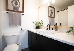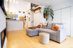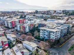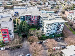 Welcome to this 2-level loft-style home at 4-797 Tyee Road, offering modern design, flexible live/work zoning & private outdoor living in the heart of Vic West. With approximately 723 sq/ft of interior space plus a generous patio, this home offers a unique urban lifestyle. The open-concept main level features soaring ceilings, abundant natural light and direct patio access—perfect for entertaining or relaxing. The contemporary kitchen includes stainless steel appliances, updated counters, tile backsplash, ample cabinetry and peninsula seating. A 4-piece bathroom, in-suite laundry and efficient storage complete the main floor. Upstairs, the loft-style bedroom overlooks the living area and features excellent ceiling height and a dedicated closet. Live/work zoning supports office or studio use. Additional highlights include a private entrance, parking stall, storage with kayak and bike racks. Steps to trails, shops, cafés, parks, the waterfront, and minutes to downtown Victoria.