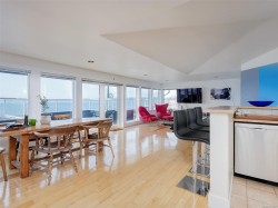 Dallas Road living. Incredible south facing water views. Bike, run or walk to Victoria's waterfront. Just minutes to the breakwater, Fisherman’s wharf and the inner harbor. Enjoy panoramic views of Juan de Fuca, the Olympic mountains, sailboats and cruise boats! Legally converted to a duplex in 1940 and completely rebuilt in 2004 with the exception of a few stud walls. One of the very few buildings in Victoria where you can have an owners penthouse suite with spectacular ocean views with good rental income below. 2 attached garages. An irreplaceable building with its height and set backs.