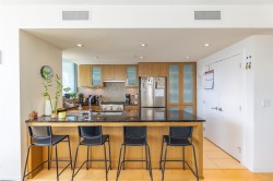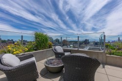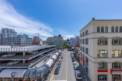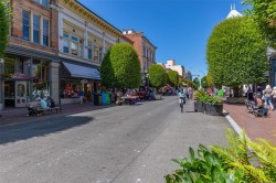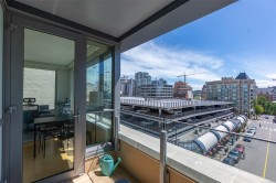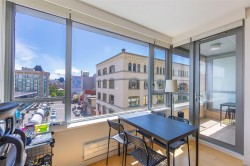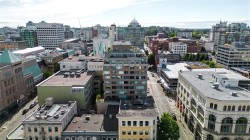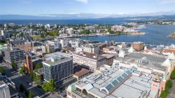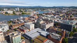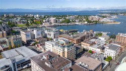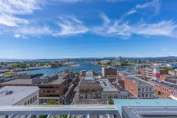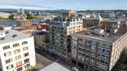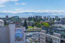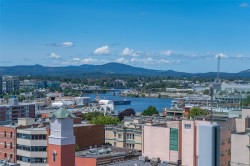 City, mountain, and harbour views await from this stunning 2-bed, 2-bath condo at The Sovereign in the heart of downtown Victoria. With nearly 1,000 sq ft, this home offers luxury, functionality and an unbeatable location, just steps from the Inner Harbour, shops, restaurants, and cultural landmarks. The bright, open layout features a balcony, office nook, and a gourmet kitchen with stainless steel appliances, gas range, stone counters, and a peninsula for four. The primary suite has a walk-in closet and a 4-piece ensuite with heated floors and a soaker tub. A second full bath includes a large walk-in shower. Enjoy comfort year-round with air conditioning and perimeter hot water radiant heat. Residents enjoy premium amenities, including a guest suite and a 12th-floor rooftop terrace with heaters, a gas BBQ, fireplace, and panoramic harbour views. Includes secure underground parking, storage locker, and bike storage. Heat, A/C, hot water, and gas are all included. Pets welcome!