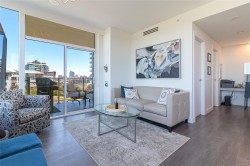 Open House Saturday January 31, 1-2:30pm. Vic West Living! Experience all that the Bayview/Roundhouse neighborhood has to offer in luxury living. Beautifully appointed 2 bed/2bath 2019 built condo with upgrades that really make this unit unique. Over 1000 sqft, corner unit with great views, and wonderful light in all living areas. Open plan living areas with good sized balcony with access to living room and 2nd bedroom/office. Great kitchen with center island, office area, and in-suite laundry. Many custom upgrades! You will love the development that features resort style amenities, including concierge, guest suite, beautiful sunny outdoor pool, fitness facility, lovely lounge, dog wash station and secure underground parking with separate storage, and bike storage. Steps to the waterfront walkway, the Songhees pathway, groceries and the beautiful blue bridge to all that downtown has to offer. Pet friendly, up to 2 dogs and 2 cats!! BBQ's allowed too! Quick possession available!