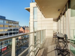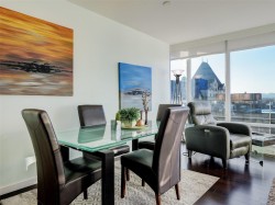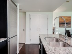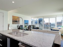 Welcome to The Falls and this exceptional 8th floor, west-facing 2 BR / 2 BA condo in the heart of downtown Victoria. Floor-to-ceiling windows fill the home with natural light while showcasing panoramic city views, including the landmark Empress Hotel and distant mountains. The open-concept design features granite countertops, stainless steel appliances with gas range, engineered hardwood flooring, and in-suite laundry—offering a refined balance of style and function. The spacious primary bedroom includes a spa-inspired ensuite, while the second bedroom and full bathroom provide flexibility for guests or home office use. A premier steel-and-concrete building, The Falls offers concierge service, fitness centre, swimming pool, hot tub, secure underground parking, bike storage, and pet-friendly living. Steps to the Inner Harbour, fine dining, boutique shopping, and cultural attractions, this home delivers sophisticated urban living at one of Victoria’s most desirable downtown addresses.