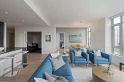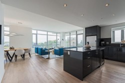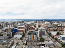 This stunning sub-penthouse at The Escher offers 2 spacious bedrooms, 2 full baths, a large den, and over 1,300 sq ft of refined living space. Enjoy breathtaking panoramic views of the Pacific Ocean, Olympic Mountains, and downtown Victoria through expansive floor-to-ceiling windows. The open layout features 9' ceilings, a gourmet kitchen with quartz counters, induction cooktop, wine fridge, and enough space for hosting. The primary suite includes a spa-inspired ensuite with soaker tub, walk-in shower, heated floors, and custom closets. Relax on your sunny south-facing veranda or the rooftop patio. Includes secure underground parking, storage locker, bike room, and dog wash. Pet-friendly and steps to dining, shops, the YMCA, and Beacon Hill Park. Built by Chard Development, this unit has barely been used since purchased brand new and ready for immediate possession.