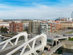 Welcome to the Pearl Residences, a premier boutique-style waterfront steel & concrete building located in the heart of Victoria's vibrant & historic Old Town district. This SW-facing penthouse 2 bed 2 bath unit features 2 balconies with views of the Upper Harbour and Johnson St Bridge. This 1,211 sq ft home offers 9 ft ceilings, a contemporary kitchen with a light colour scheme, high-end S/S appliance package, quartz countertops, pantry, beverage fridge, separate laundry room with sink, extra storage, central air heating and cooling for ultimate comfort, and radiant floor heating in the bathrooms. Intelligent layout with separated bedrooms for added privacy. The primary suite features an ensuite bath with dual sinks, slipper tub, separate shower and large walk-in closet. With side-by-side parking for two, storage, bike storage, a fitness facility, kitchen-equipped amenity room, and pets allowed, this unit offers the ultimate luxury downtown lifestyle. GST IS INCLUDED.