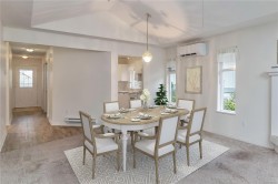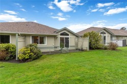 OH - Sat 11:45-1:00. HD Photos, Video & Floorplans Online! Rare opportunity to own this well-designed 3BD 3 BTH end-unit townhouse backing onto peaceful green space. Perfect for families, retirees, or anyone needing accessible living, this thoughtfully laid out home w/no-step main level living has an abundance of natural lighting, offering vaulted ceilings, cozy gas FP in the living room, dining, spacious Primary bdrm w/ensuite, full bath, laundry, 2nd bdrm, plus direct patio access—ideal for BBQs & relaxing. Upstairs offers a private 3rd bdrm w/ocean views & its own private full bath. Stay comfortable year-round w/a heat pump & bonus w/crawlspace, garage, & serene outlook. Pet-friendly: 1 dog & 1 cat allowed – no size restrictions. Steps to Admirals Walk – Thrifty Foods, Canadian Tire, E&N Trail, paddle at Thetis Cove, stroll Portage Park & Gorge Waterway. Strata plan finished 1372sqft - total sqft 1599, Floor plan 1425sqft finished - total sqft1855.Quick possession is possible.