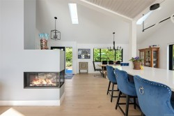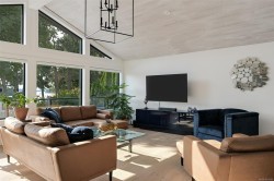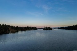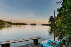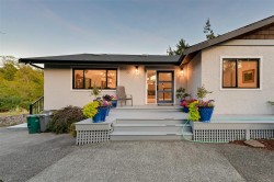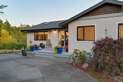 A rare luxury oceanfront offering in coveted Price Bay. This fully updated high-bank home showcases breathtaking views of Cole Island and the Olympic Mountains with 150+ ft of private waterfront on a .25-acre lot. The main level features 3 beds/2 baths, an elegant open kitchen/dining area, vaulted-ceiling living room with gas fireplace, and a stunning wrap-around oceanfront deck featuring a brand new hot tub. Upgrades include a new roof, full electrical rewire, new heat pump, new deck and rails, and heated bathroom floors for added comfort. The lower level offers a spacious 1 bed/1 bath area easily convertible to a separate suite, complete with private entrance, patio, and manicured yard ideal for guests or rental potential. A detached garage, private dock, and generous storage complete this exceptional property. Just 15 minutes to Downtown Victoria and the Westshore, and steps to the Galloping Goose Trail. A rare chance to own an elevated and timeless West Coast oceanfront sanctuary.