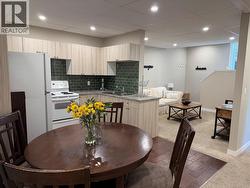 Located on a quiet no thru street, this lovingly maintained West Coast contemporary home is 3 minutes to the bridge for easy access to Kelowna. Step through the front door into the heart of the home, where you'll find a spacious living area with an open layout to the dining area and kitchen, vaulted ceilings creating a warm and inviting atmosphere. This 5 (all large) bedrooms + den & 3 bath home features an island kitchen and ample storage space and a finished basement with a suite (potentially 2 suites). The primary bedroom features an en-suite bathroom, offering a private oasis for relaxation. Vaulted ceilings, large rooms, wrap around deck, ideal location, spacious layout, and endless potential, this home is just waiting for you to make it your own. RV parking available at the bottom of driveway. Ample parking on the large driveway as well as an attached double car garage. Air BnB ready! Don't miss this one! (id:27)