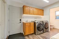 CUSTOM 4 BEDROOM 3 BATH 2 Story Home with Split level design on a BEAUTIFUL .29 ACRE FLAT POOL Sized yard on Thacker in Lakeview Heights! Brick pillars and Wrought iron fencing offer real "Street Appeal"! Large paved driveway with tons of parking. Solid Brick front exterior. Walk in the door and you are welcomed in with a grand entry with high 16' ceilings and open staircase. Living room-dining room features vaulted ceilings and plush carpets. Raised OAK eat-in Kitchen with oodles of cabinets and Eating area overlooking the family sized back yard and deck. Eating area overlooks a huge Family room with Gas fireplace, Oak panelled wainscoting, easy care laminate floors and a glass sliding doors to a massive entertainment sized deck and fenced yard. Mudroom laundry room with 2 piece bath off double garage. Family friendly 3 big bedrooms up with corner windows. Massive King sized Primary bedroom features impressive 10' ceilings, rock star sized walk in closet and a large luxurious 4 piece bathroom with jetted tub and separate shower. Beautifully modernized main 4 piece bathroom with underlit cabinets, new vanity, and skylite. 4th bedroom and family room down. Tons of storage in easy access 6' half basement. Upgrades include: Full house water filtration system, Reverse osmosis w/ 2taps