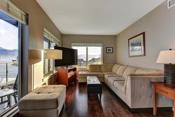 Welcome to your dream home at The Cove! This luxury 3 bedroom, 3 bathroom Penthouse, almost 1,500sqft is perfectly located front-row, lakefront with unparalleled panoramic views of the lake, surrounding mountains, and twinkling city lights. A ginormous 743 sq ft wrap-around deck, this is truly a lake view like no other, so close you’ll feel like you can reach out and touch the water. Inside, you’ll find spacious living spaces with newer engineered hardwood floors, granite countertops, and rich wood cabinetry. Three sets of French doors seamlessly connect indoor comfort with outdoor living, perfect for entertaining or unwinding in total serenity. Offered fully furnished and turnkey, this unit is move-in or rental-ready, with optional on-site rental management available. Located in a year-round vacation destination, residents enjoy access to resort-style amenities including a fitness center, private sandy beach, restaurant & lounge, two seasonal pools with hot tubs, waterslide, tennis & pickleball courts, the pampering Spa at The Cove, a private theatre, putting green, and scenic fire pits & BBQ areas. The Cove also sits directly between two world class alpine resorts, only 75 minutes to Big White Mountain and 95 minutes to Apex Mountain Resort. Family- and dog-friendly, this unit can’t be beat! This is lakeside luxury living at its finest, whether you’re looking for a private escape, a savvy investment, or both, allowing short term or long term rentals.