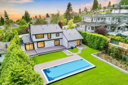 Completely rebuit & renovated family home on prestigious Westdean Cres in West Vancouver’s sought-after Hollyburn Ridge. Set on a private, sun-filled 14,370 sqft level lot, this 3,600 sqft residence blends refined design w/ high-end functionality. The main level features bright, open layout w/ formal living room, elegant dining area & state-of-the-art Bosch kitchen w/ large island, flowing into a sunlit family room. Upstairs, three spacious en-suited bedrooms incl. a luxurious primary suite w/ spa-like en-suite, walk-in closet & ocean views. A main-floor office & guest room open to garden terraces & outdoor pool. The lower level offers a games room, children’s playroom, ample storage & private one-bedroom in-law suite. Moments from Dundarave, Ambleside, beaches, trails, and top amenities.