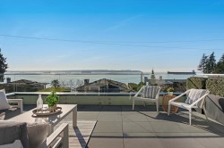 This isn't just a home ... it’s a statement. Welcome to 3373 Radcliffe Avenue in West Bay, West Vancouver, set on one of the coastline’s most iconic semi-waterfront streets. Just steps to the beach, with breathtaking ocean views, this is West Vancouver living at its most effortless. Inside, nearly 3,800 sq ft of refined coastal design unfolds across 5 bedrooms and 6 bathrooms, wrapped in light, glass (floor to ceiling Euro windows), and seamless indoor-outdoor flow. Expansive ocean-view balconies set the stage for sunset wine nights and unforgettable entertaining. The chef’s kitchen is sleek and intentional, complete with premium appliances and a separate wok kitchen—exactly what you’d expect at this level. An in-home elevator, solar power, radiant heat, A/C with HRV, and full security.
