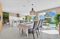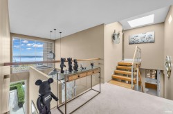 Architectural masterpiece in prestigious Rockridge! This 5,748 sq ft contemporary residence on a 12,633 sq ft south-facing lot captures breathtaking ocean, city and sunset views from all levels. Built with concrete, steel and glass, it showcases soaring ceilings, floor-to-ceiling windows, radiant heat, A/C, and a state-of-the-art smart home system. Features 5 beds, 7 baths, gourmet kitchen with top-tier appliances, media room, wine cellar, and elegant indoor-outdoor flow. Resort-style pool, spa, terraces, and landscaped gardens offer ultimate privacy. Close to Caulfeild Elementary and Rockridge Secondary.