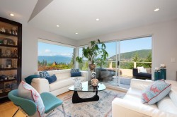 Completely unique! Stunning 3800 sq/ft treasure nestled into a totally private sun drenched lot offering gorgeous ocean views in a setting that is simply magical. Spectacular, landscaping, rock work and tranquil ponds wrapped around this exquisitely crafted and completely renovated custom home with impeccable attention to detail and incredible quality throughout which is a feast for the eyes. Impressive architecture shines, with spacious open rooms, wine cellar, vaulted ceilings, skylights and beautiful natural lighting providing a glorious experience to share with friends and family. Private elevator, incredible indoor/oudoor living with huge covered outdoor patio built in bbq and 1700 sq/ft deck and spa/ tub provide the most magnificent tranquil lifestyle that is rare! Very special!