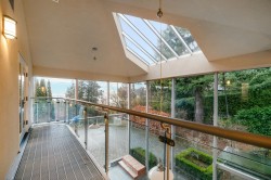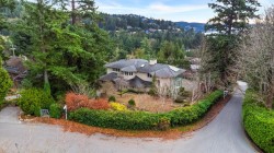 An estate-sized opportunity offering privacy, expansive grounds, and south-facing ocean views in a prime West Vancouver location. Set on a 19,602 sq.ft. lot, this custom-built 2005 Mediterranean-style residence combines concrete, steel, and wood construction with a dramatic glass atrium and three-level elevator access. The generous layout features six bedrooms, five bathrooms, a recreation room—perfect for customization or extended family living. Enjoy existing water features, open grounds with a flat lawn, and a private driveway leading to an oversized double attached garage. Steps to Larson Beach, Gleneagles Recreation Centre, schools, and golf. Amazing opportunity on a prime property, priced well below assessed value.