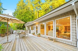 Just up from Bachelor Bay and around the bend from Whytecliff Park, this charming, updated home is move-in ready. Designed to embrace its natural surroundings, the primary bedroom offers a private outlook with French doors to the backyard, plus a spacious walk-in closet. A large front deck captures west-facing treetop views, while the yard and sunny veggie gardens create the perfect setting for outdoor meals. Lovingly cared for by the same owner for 20 years, the home features top of the line Euroline doors and windows, along with updated kitchen and bathrooms. Set well above Marine Drive, with ample parking and turnaround space for three cars at the top of the driveway, this home blends comfort, convenience, and West Coast charm.