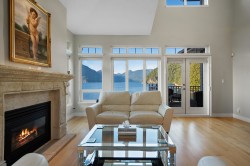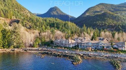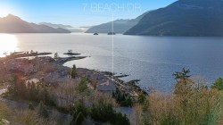 True WATERFRONT living at #7 Olivers Landing! This end-unit townhome offers approximately 3600sf of indoor living space over three levels with UNOBSTRUCTED water views from almost every room! Up, find two spacious bedrooms both with ensuite bathrooms and spacious walk in closets. The top floor landing can be used as a family room, office or gym. On the main level, options for large office or primary bedroom with private ensuite give this home flexibility to age in place. Over-height vaulted ceilings with large windows take in the views of Howe Sound from this front row WATERFRONT home. Open main level spaces are ideal for entertaining friends and family! Down, find a spacious rec room with space for a pool table, games room and optional 4th bedroom (easy reno) with ensuite.