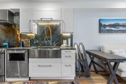 Discover this stunningly renovated Creekside retreat, just steps from the gondola. The gourmet kitchen is a showpiece with dramatic stone counters & premium appliances, complemented by a cozy stone fireplace in the living area with radiant in floor heating throughout. This ground-floor unit offers a private walk-out patio opening to a quiet courtyard, perfect for any season. After a day on the mountain, relax in the year-round outdoor pool and hot tub. With Phase 1 zoning permitting nightly rentals and unlimited owner use, this is a superb turn-key investment and the ultimate Whistler getaway.