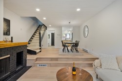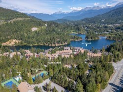 Set on the shores of Alpha Lake, this exquisitely renovated 3-bed, 2-bath townhouse in Twin Lakes offers a perfect blend of luxury and alpine serenity. White oak hardwood floors flow through an open living space anchored by a striking wood-burning fireplace. The custom kitchen with oak cabinets and Caesarstone countertops is designed for effortless entertaining. Step onto your deck to take in breathtaking inlet views. Spa-inspired bathrooms feature heated floors, quartz countertops, a soaker tub, and private sauna. Twin Lakes offers a private beach, dock, outdoor pool, tennis court, and ski shuttle to the gondolas. Just 5 minutes from Creekside, this is the ultimate year-round retreat or weekend getaway. Embrace the Whistler lifestyle, surrounded by nature and adventure at your doorstep.
