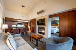 A rarely available penthouse quarter-share in Evolution, positioned quietly closest to the ski runs and away from the street — yet right in the heart of Creekside Village. Soaring vaulted ceilings inside and out give the suite a sense of space that’s hard to find, and the covered patio becomes an extension of the living area, framing mountain views and glowing sunsets you’ll come back to again and again. Inside, the layout is warm, functional, and designed for real use. A double-sided gas fireplace connects the living room and bedroom, creating a cozy atmosphere after long ski days or summer hikes. The suite comfortably sleeps four, making it ideal for families, couples, or friends escaping to the mountains together. Beautifully maintained, thoughtfully improved, and perfectly located.