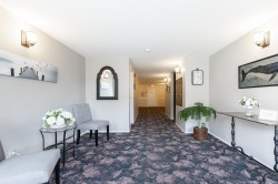 Wonderful Boutique 55+ Condo Complex in the Heart of White Rock. This First Floor CORNER Unit feels like a house with 1472 square feet of living space plus an almost 100 square foot Sunny Solarium offering South-West Exposure. Huge living room for those downsizers with lots of furniture. Kitchen/Dining combo with upgraded flooring. Cozy Corner Gas Fireplace. Primary & 2nd Bedroom are a very generous size and at opposite ends of the unit. Both have walk-in closets. Upgraded Ensuite Bathroom with Large Shower. 2nd Full Bathroom is a cheater ensuite, very convenient and private for guests. Full size Laundry Room. Lots of closet space. Secure undergound Parking and Storage Locker. Excellent Value just flat steps to Uptown White Rock & Hospital on a quieter street. New Roof 2020 + Windows 2012.