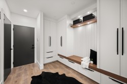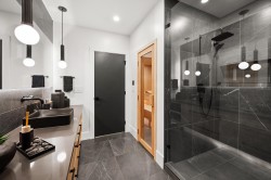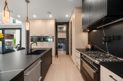 Stunning design &n quality construction by Rychter Custom Homes. Honey-coloured hardwood floors, floating staircase & extensive wood features are just the start. Radiant heat, A/C, automated blinds, Control 4- smart home, on demand H/W, Retractable B/I Vac, Generac Generator, Shinnoki Panel Cabinetry with Integrated Liebherr Fridge, wine cooler & 24" Freezer. Fisher Paykel kitchen appliances, B/I Coffee/Espresso & Steam Oven, Spice kitchen. Covered outdoor living space with fireplace and b/i barbecue station. Primary suite has open glass wall to the sundeck with view of the mountains & ocean. Rooftop deck is perfect for entertaining. 1-bed legal suite is also registered with Airbnb. Bsmnt offers rec room with wet bar, wine storage & sauna.
