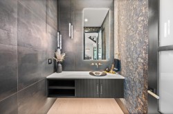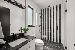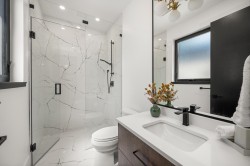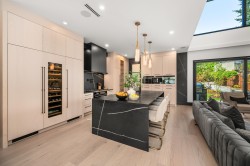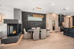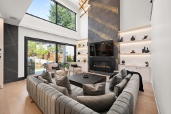 Quality design & construction by Rychter Custom Homes. Hardwood floors, floating staircase & stunning 3-level concrete feature wall. Radiant heat, A/C, auto blinds, Control 4- smart home, on demand H/W, Retractable B/I Vac, Shinnoki Panel Cabinetry with Integrated Liebherr Fridge, wine cooler & 24" Freezer. Fisher Paykel kitchen appliances, B/I Coffee/Espresso & Steam Oven, Spice kitchen. Expansive covered deck off main living room with stunning views! Primary suite has open glass wall to the sundeck with view of the mountains & ocean. Relax in the upstairs loft/library. Fenced backyard offers covered outdoor living space with fireplace and b/i barbecue station. 1-bed legal suite is also registered with Airbnb. Bsmnt offers rec room with wet bar, wine storage & sauna. Must be seen!