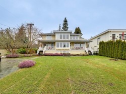 Custom-built Craftsman home designed by Bob Ferguson and built by Ronco, ideally located at 14008 Marine Drive West in White Rock. This timeless residence offers a traditional family-friendly layout with 5,910 sq. ft. of living space across three levels, all equipped with air conditioning and south-facing ocean views. The main floor features a spacious kitchen with eating area, family room, mudroom and laundry, office/playroom, and formal living and dining rooms—perfect for both everyday living and entertaining. The primary bedroom retreat spans over 900 sq. ft., offering exceptional space and comfort. The basement includes a 1,500 sq. ft. suite with laundry, ideal for extended family or guests. Situated on a 13,939 sq. ft., fully landscaped and fenced south-exposure lot, the home boasts.