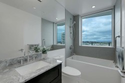 A rare offering at Foster & Martin – two premier units combined into one stunning 2,258 sq. ft. 3 bed, 3 bath + den residence. Enjoy panoramic 180° ocean, Mt. Baker & North Shore Mountain views from every room and a 419 sq. ft. wrap-around balcony. Features floor-to-ceiling windows, hardwood floors, A/C, gas fireplace, and a chef’s kitchen with Miele appliances and large island. Includes 4 parking spaces, 2 lockers, and access to a 10,000 sq. ft. Health & Wellness Centre with pools, gym & concierge.